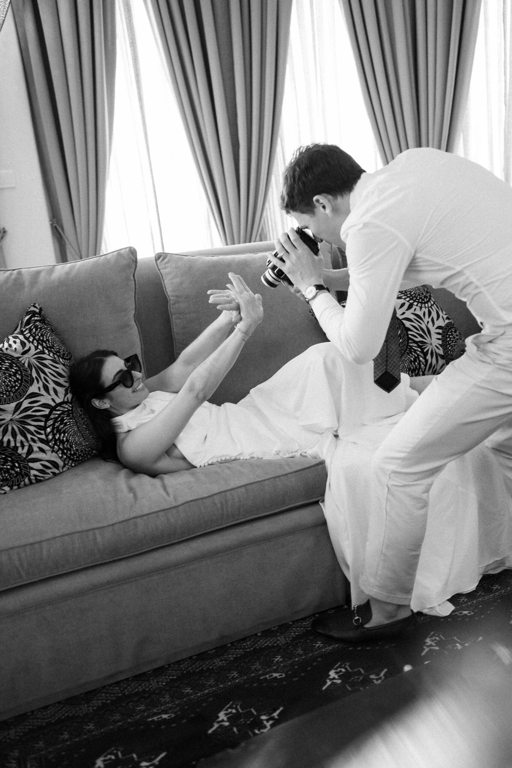 A couple playing with the camera