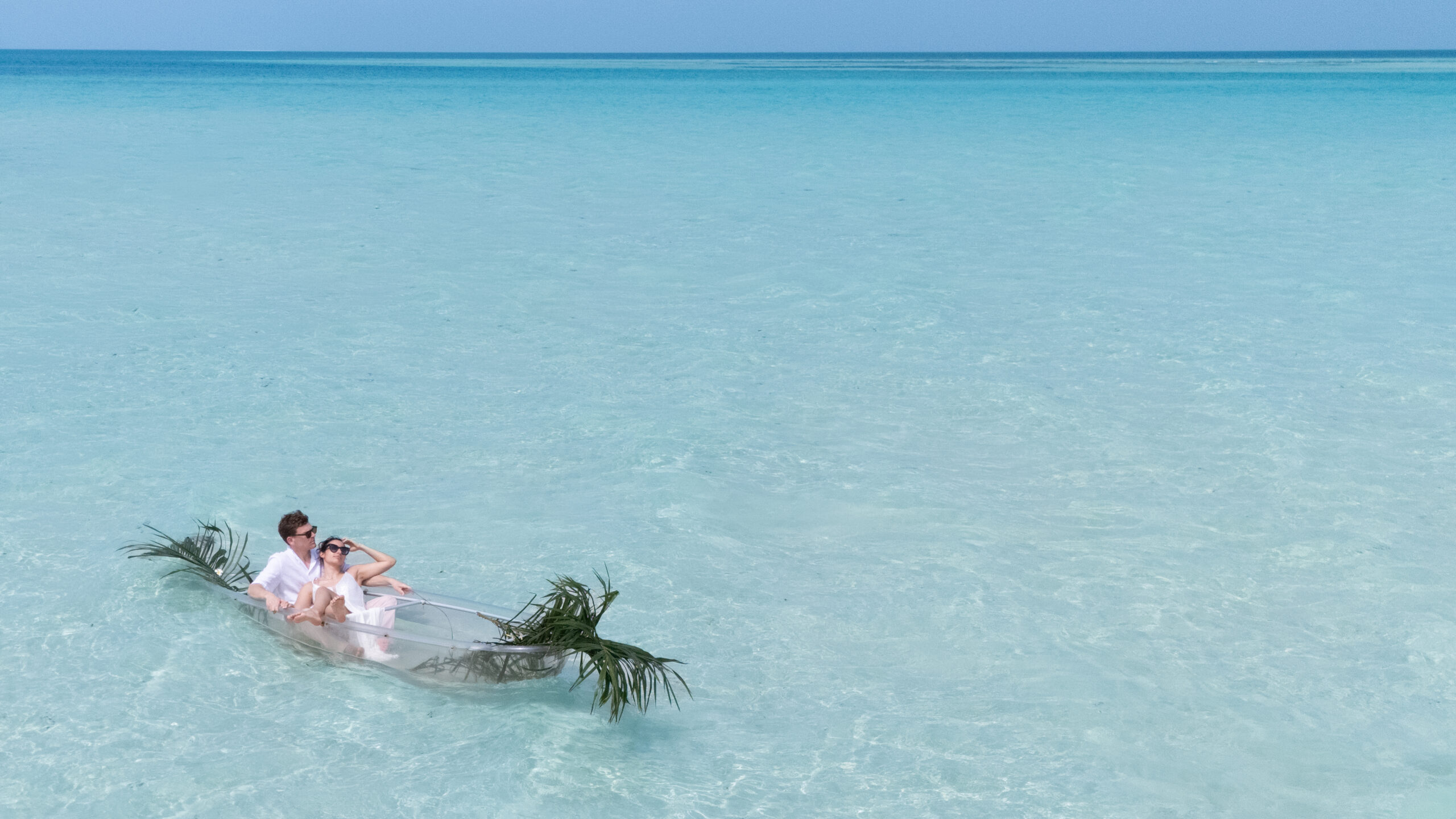 The bride and groom surrounded by paradise