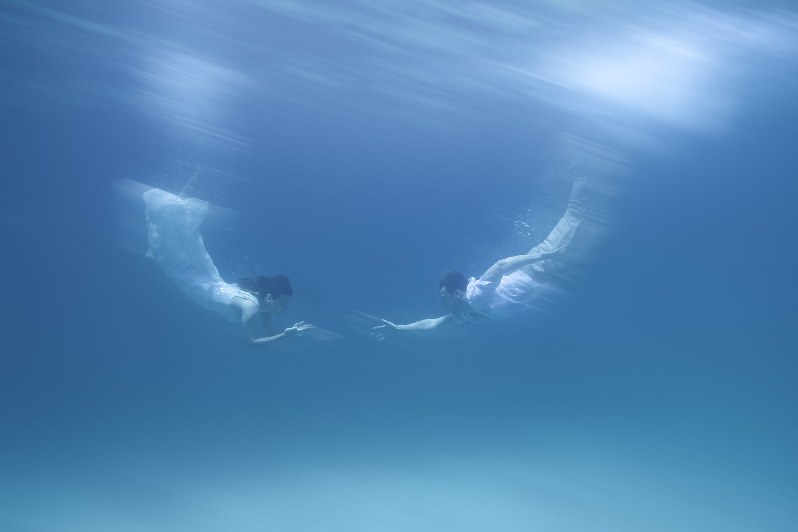 Bride and groom in a Trash the Dress underwater photo session in Martinique.